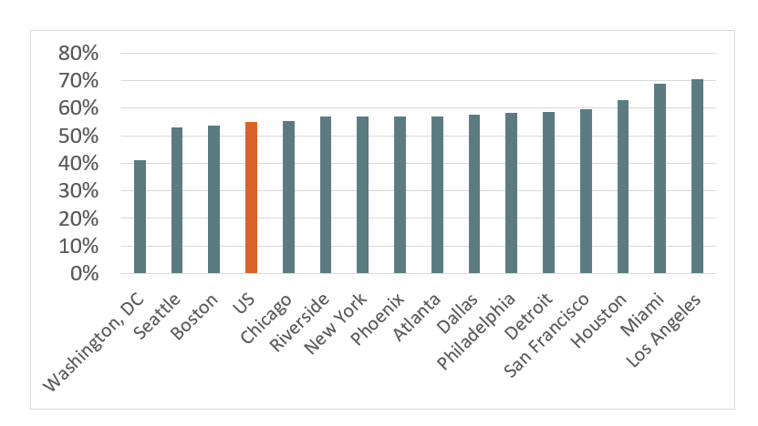 When looking at how renters have been impacted across metro areas, the story is a little more varied. There were just three metro areas where a smaller share of renters experienced household income loss than the U.S. total, including Washington, D.C., Seattle and Boston, likely supported by employment in government and technology. On the other hand, Houston, Miami and Los Angeles have been faring noticeably worse. With high concentrations in manufacturing, mining and construction, it's possible renters in Houston have seen cuts in shifts or hours in places where there wasn't full employment loss. Meanwhile, both Miami and Los Angeles are struggling to recover jobs lost in leisure and hospitality sectors over the last seven months.
