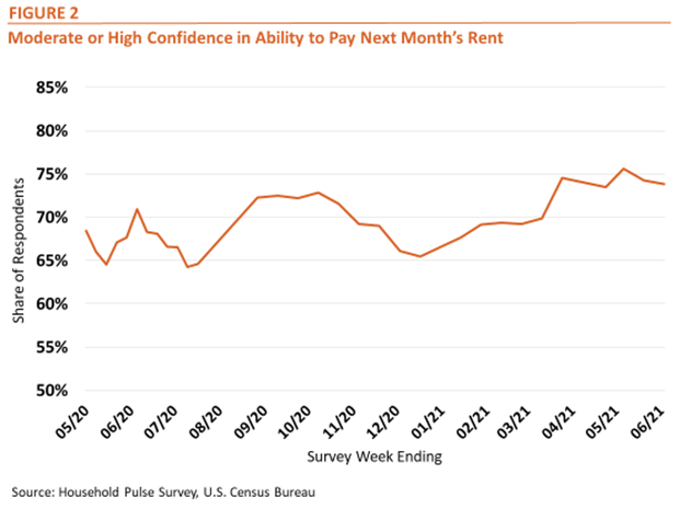The results from the Household Pulse Survey encompass all renters, regardless of property type, while the Rent Payment Tracker only captures data from professionally managed apartments. However, both metrics indicate how resilient renters have been during the pandemic.