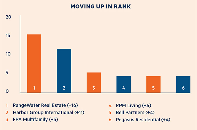 While there wasn’t a lot of movement on this year’s Managers list, RPM Living broke into the top 10 and RangeWater Real Estate jumped 16 spots in rank. In addition, GID and Independence Realty Trust made their way onto the list for the first time this year.