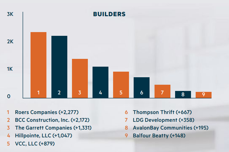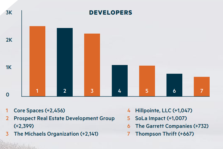 Our top developer and builder rankings reflect this surge in new multifamily activity, with most firms on the lists noting significant increases in units started.