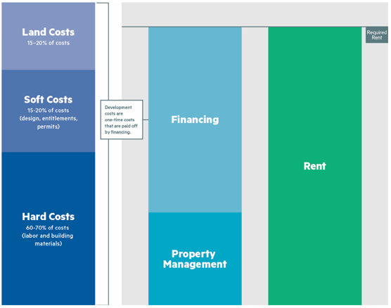 At its most basic level, to make financial sense and to attract the investment needed to develop and preserve apartment communities, the income generated from the new development must exceed the expenses. This means the expenses cannot exceed what the projected rents—or in the case of existing communities, the actual rents—are for that property. If a proposed policy increases operating expenses for a housing provider, the market conditions must ensure the property can generate sufficient revenue for it to be financially viable and to operate and attract investors that provide financial backing for activities such as major renovations to the property.