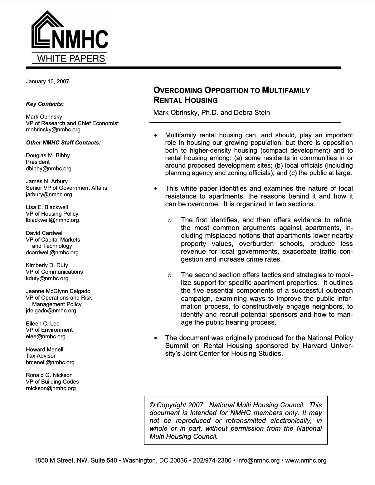 White Paper: Overcoming Opposition to Multifamily Rental Housing