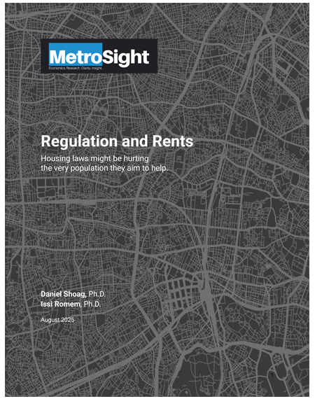This report examines how four categories of regulation affect rents across U.S. metro areas. The study finds that several popular policies are associated with higher rents, with the largest effects on lower-income renters and residents of 2–4 unit properties.