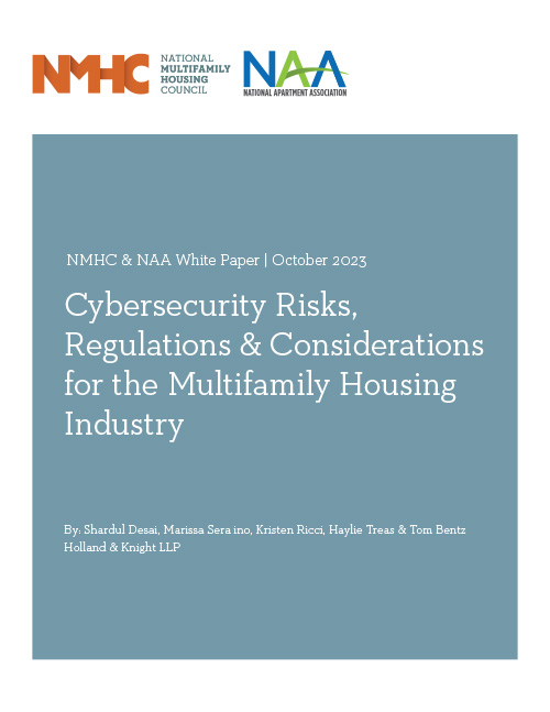 NMHC & NAA White Paper: Cybersecurity Risks, Regulations & Considerations for the Multifamily Housing Industry