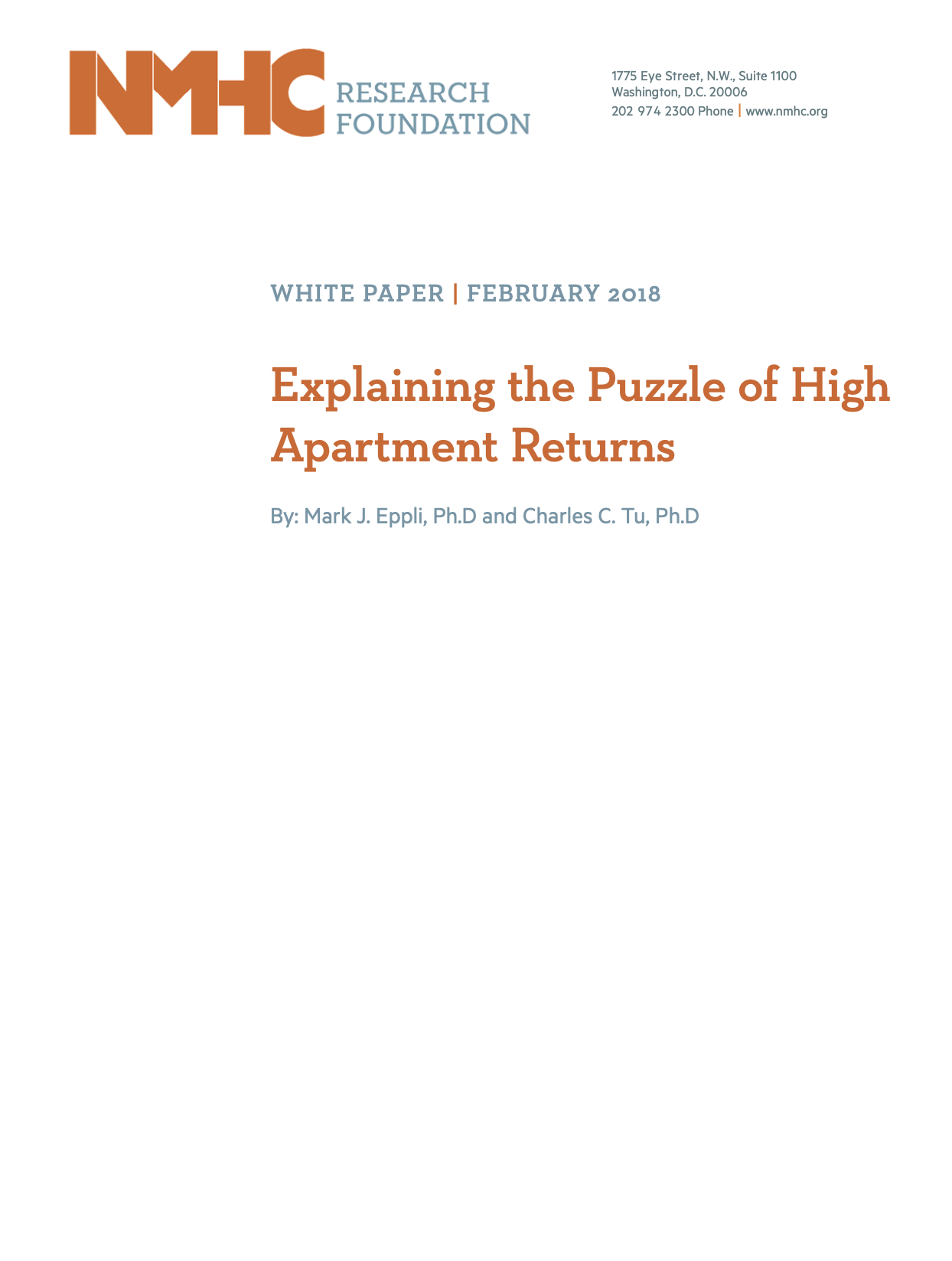 In the first work of research funded by NMHC’s Research Foundation, Professors Mark J Eppli and Charles C. Tu then examine a wide range of property and financial market characteristics to try to find insights into expected investment returns. One result: acquiring properties immediately after a downturn boosts returns.