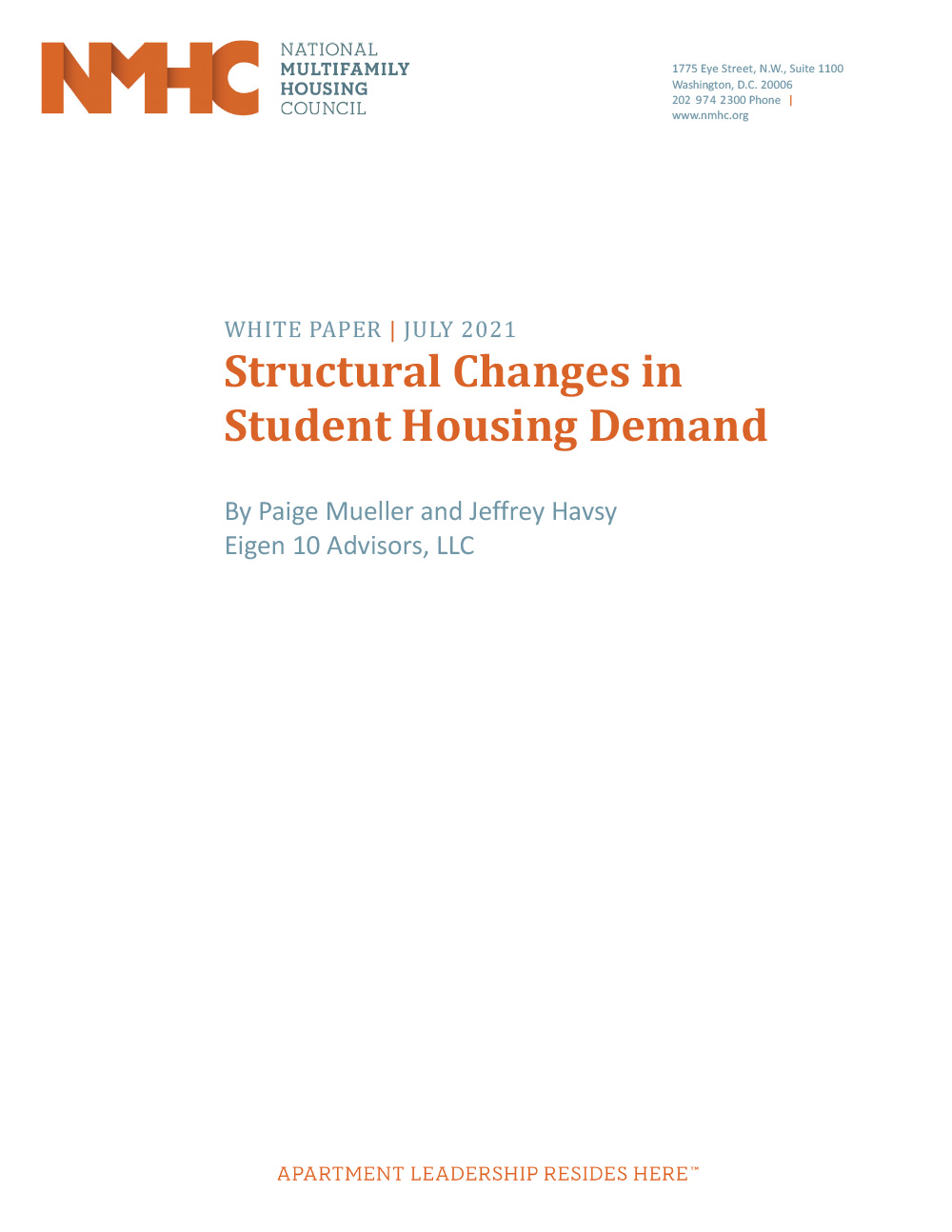 NMHC produces a variety of reports on a variety of topics that impact the development, financing, operations, and management of apartments.